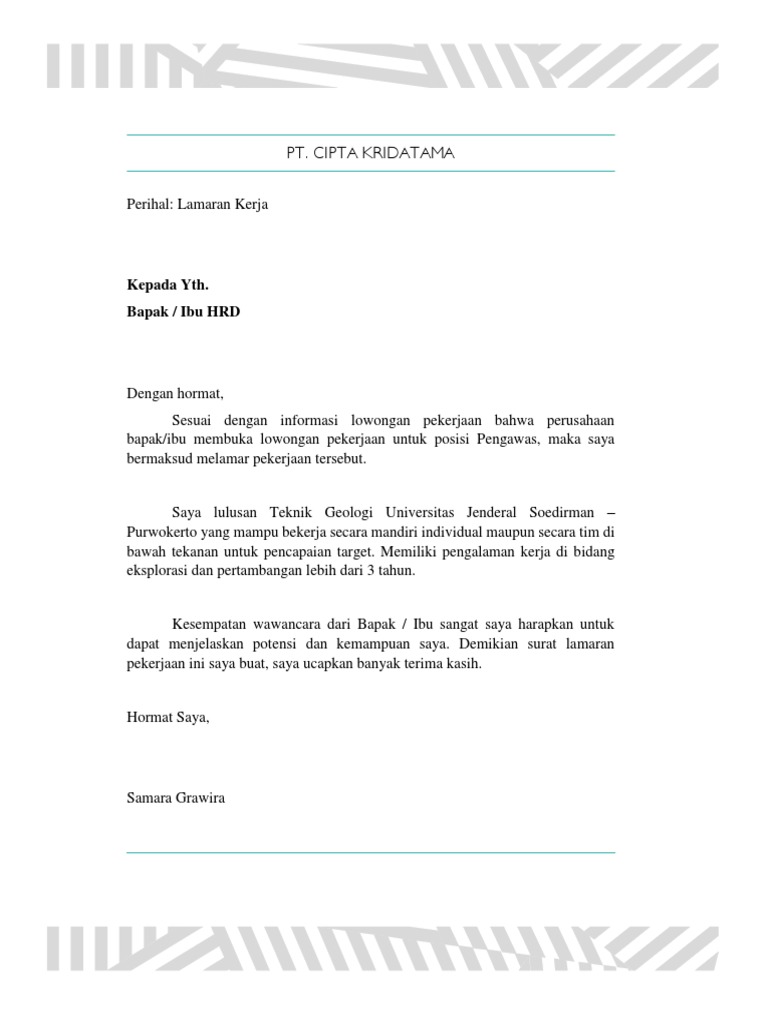 Kepada yth bapakibu hrdbagian personalia pt freeport indonesia di tempat. Ditambah lagi pada saat ini juga sudah ada banyak sekali informasi mengenai lowongan kerja dengan … Kayu cara membuat surat lamaran kerja di pabrik rokok cara membuat surat lamaran kerja di pabrik tulis tangan cara membuat surat lamaran kerja di perusahaan batu bara cara membuat surat lamaran kerja di perusahaan pelayaran cara membuat surat lamaran kerja di perusahaan tambang cara membuat surat. Surat lamaran kerja adalah surat yang digunakan untuk. 37 contoh surat lamaran kerja terbaru yang baik dan benar lengkap.